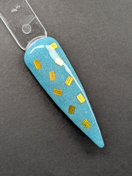 "I absolutely love this new color!! The baby blue shade is so pretty and it sparkles just perfectly to where it is not too little but just enough! It looks so good on my nails and I can't wait for my next dip powder from Matinee Manis!!😍💅"